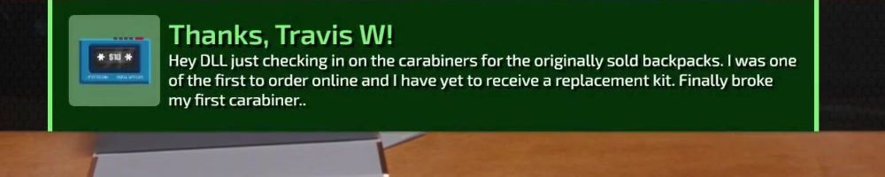 Hey DLL just checking in on the carabiners for the originally sold backpacks. I was one of the first to order online and I have yet to receive a replacement kit. Finally broke my first carabiner.