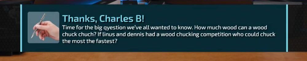 Time for the big qyestion we've all wanted to know. How much wood can a wood chuck chuch? If linus and dennis had a wood chucking competition who could chuck the most the fastest?