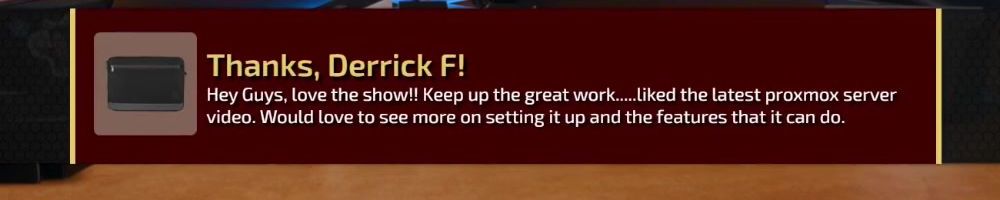 Hey Guys, love the show!! Keep up the great work.... liked the latest proxmox server video. Would love to see more on setting it up and the features that it can do.