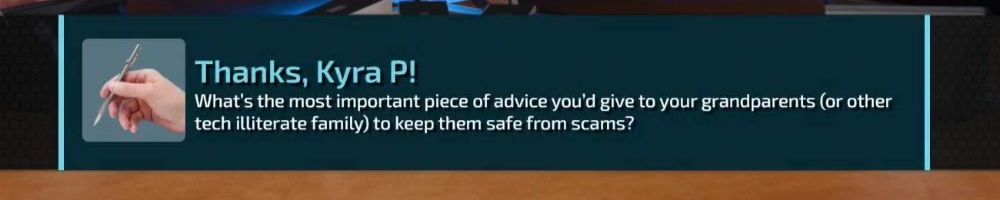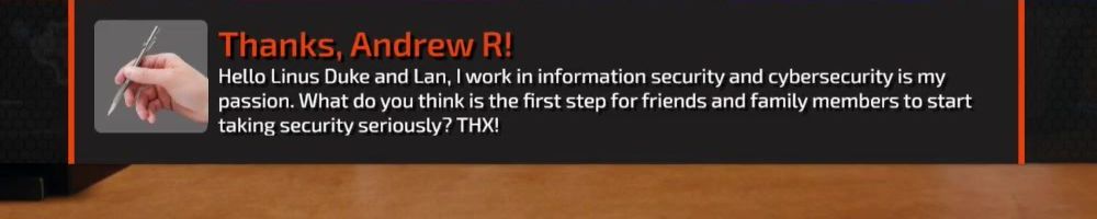 Hello Linus Duke and Lan, I work in information security and cybersecurity is my passion. What do you think is the first step for friends and family members to start taking security seriously? THX!