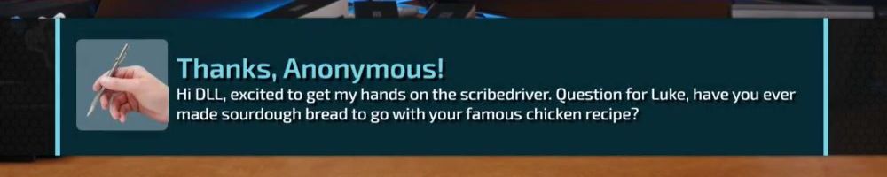 Hi DLL, excited to get my hands on the scribedriver. Question for Luke, have you ever made sourdough bread to go with your famous chicken recipe?