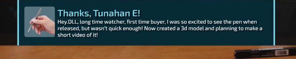 Hey.DLL, long time watcher, first time buyer, I was so excited to see the pen when released, but wasn't quick enough! Now created a 3d model and planning to make a short video of it!