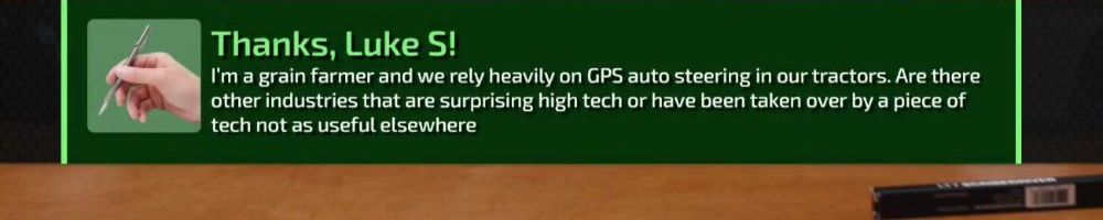 I'm a grain farmer and we rely heavily on GPS auto steering in our tractors. Are there other industries that are surprising high tech or have been taken over by a piece of tech not as useful elsewhere
