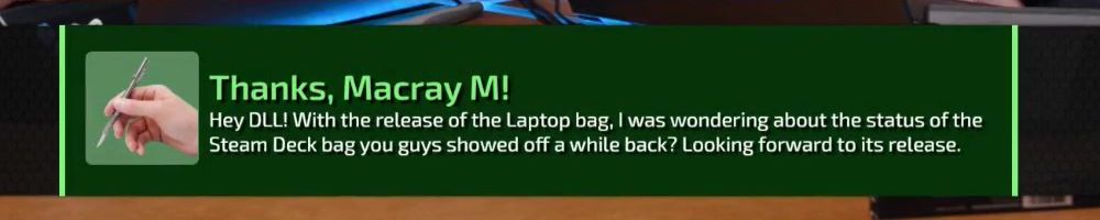 Hey DLL! With the release of the Laptop bag, I was wondering about the status of the Steam Deck bag you guys showed off a while back? Looking forward to its release.