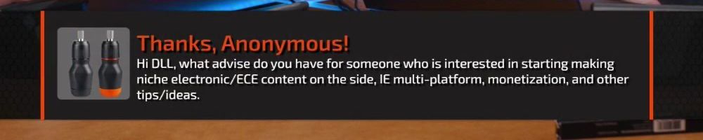 Hi DLL, what advise do you have for someone who is interested in starting making niche electronic/ECE content on the side, IE multi-platform, monetization, and other tips/ideas.