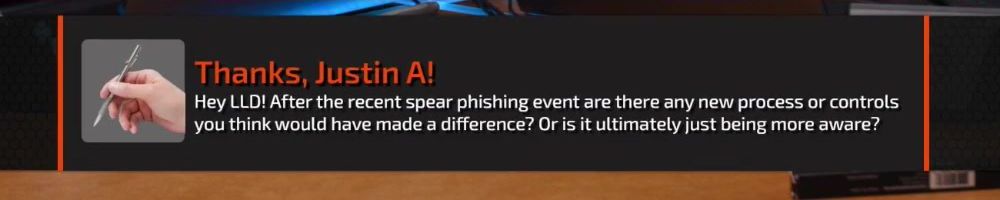 Hey LLD! After the recent spear phishing event are there any new process or controls you think would have made a difference? Or is it ultimately just being more aware?