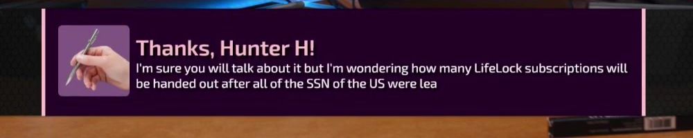 I'm sure you will talk about it but I'm wondering how many LifeLock subscriptions will be handed out after all of the SSN of the US were lea