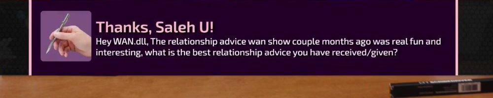 Hey WAN.dLL, The relationship advice wan show couple months ago was real fun and interesting, what is the best relationship advice you have received/given?