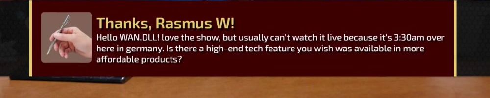 Hello WAN.DLL! love the show, but usually can't watch it live because it's 3:30am over here in germany. Is there a high-end tech feature you wish was available in more affordable products?