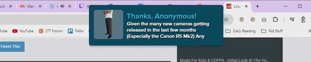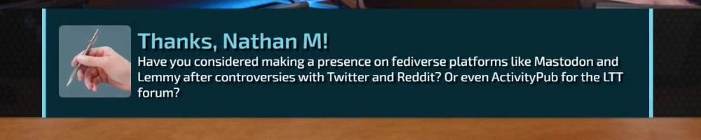 Hint: Use CTRL + F to search messages in this show, or use Whenplane's WAN Show Search tool to search for messages in all shows.