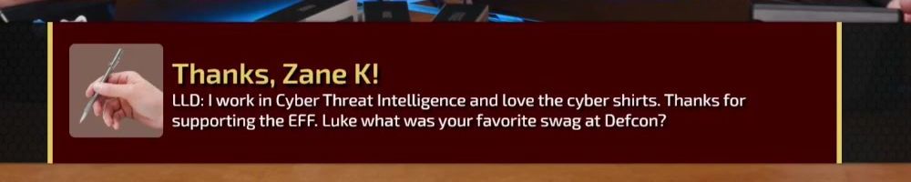 WAN.DLL special shirts are a must have. Finally stubby time as well, and the pen is a funny. Luke what was the coolest thing you saw at DEFCON?