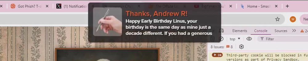 Hi DLL, Will Linus ever take on fishing instead of his current hobby of phishing?