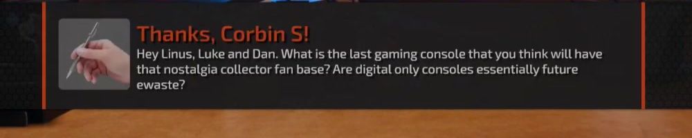 Hey Linus, Luke and Dan. What is the last gaming console that you think will have that nostalgia collector fan base? Are digital only consoles essentially future ewaste?