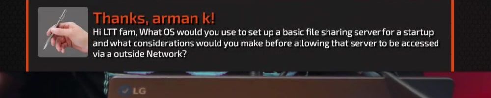 Hi LTT fam, What 0S would you use to set up a basic file sharing server for a startup and what considerations would you make before allowing that server to be accessed via a outside Network?