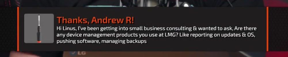 Hi Linus, I've been getting into small business consulting & wanted to ask, Are there any device management products you use at LMG? Like reporting on updates & OS, pushing software, managing backups