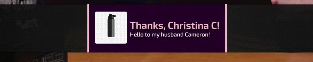 Thanks, Christina C! Hello to my husband Cameron!