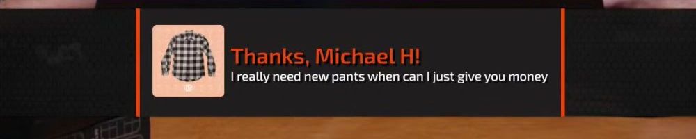 Thanks, Michael H! I really need new pants when can I just give you money