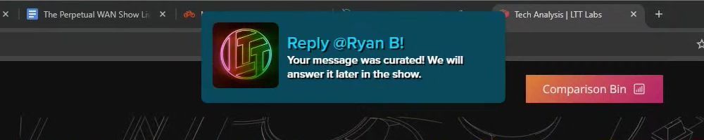 Reply @Ryan B! Your message was curated! We will answer it later in the show.