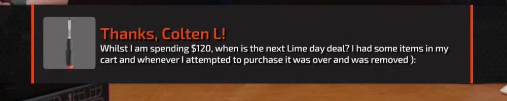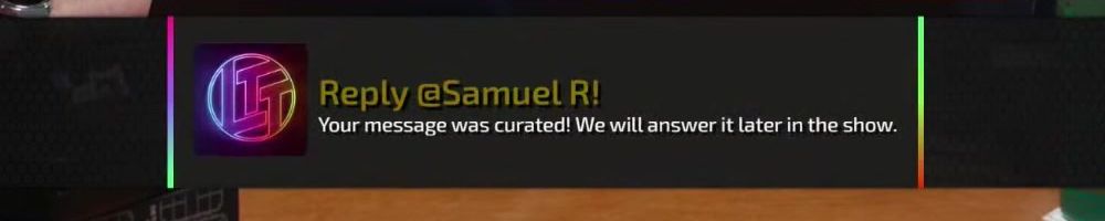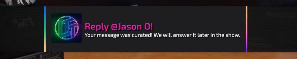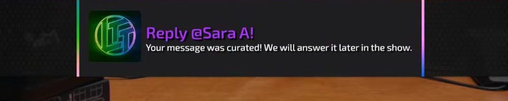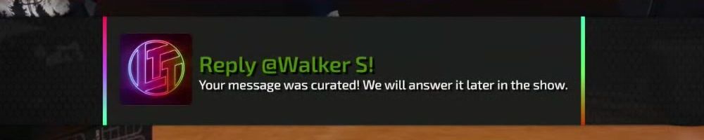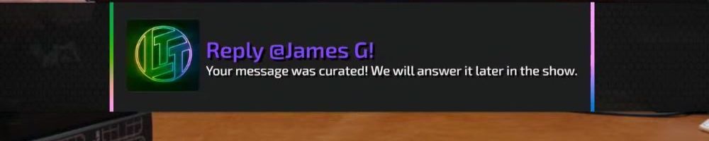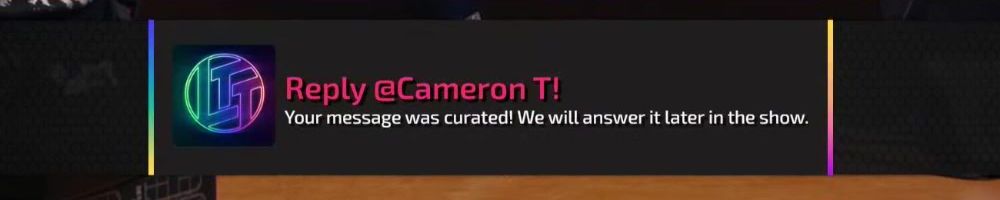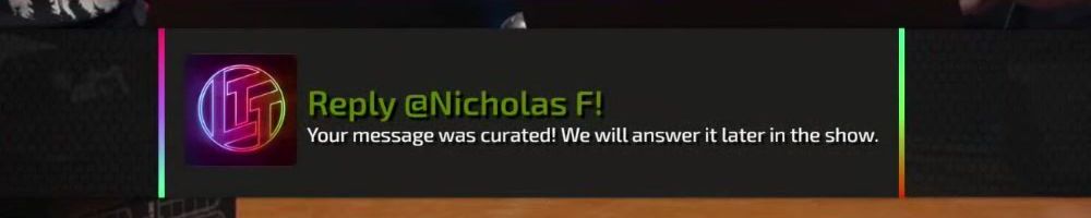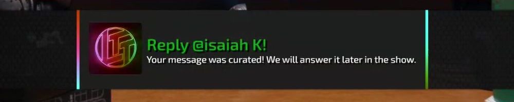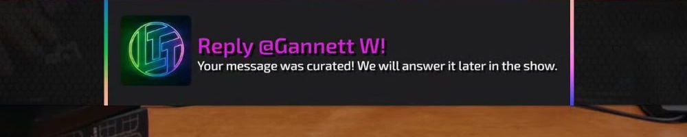 Reply @Cameron T! Your message was curated! We will answer it later in the show.