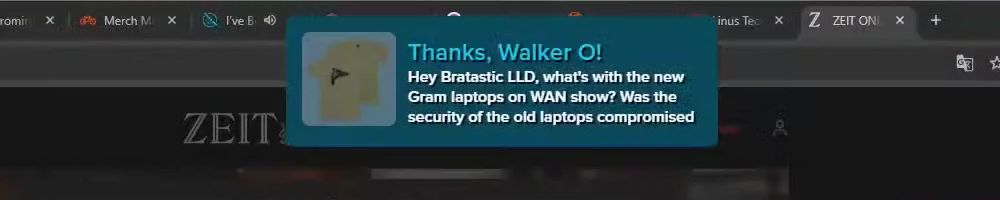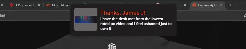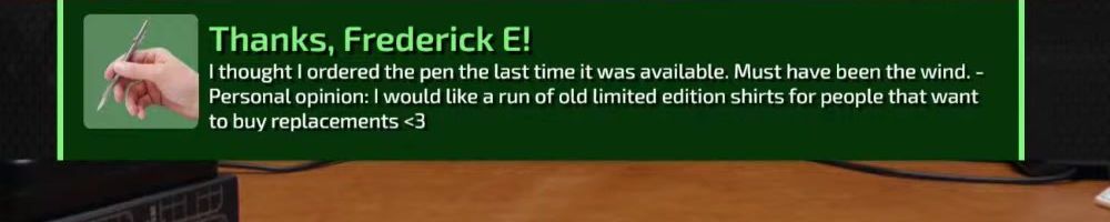 Hint: Use CTRL + F to search messages in this show, or use Whenplane's WAN Show Search tool to search for messages in all shows. Make sure that the "Merch Messages" box is checked when you search for something.