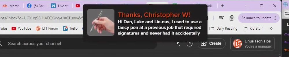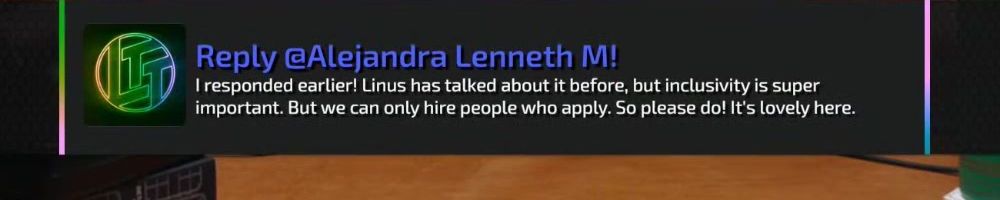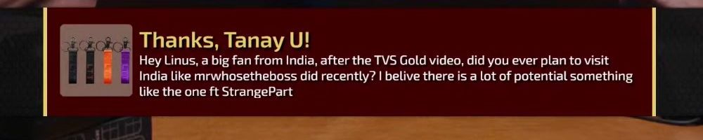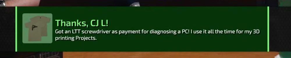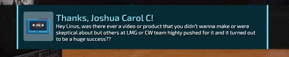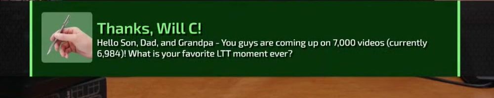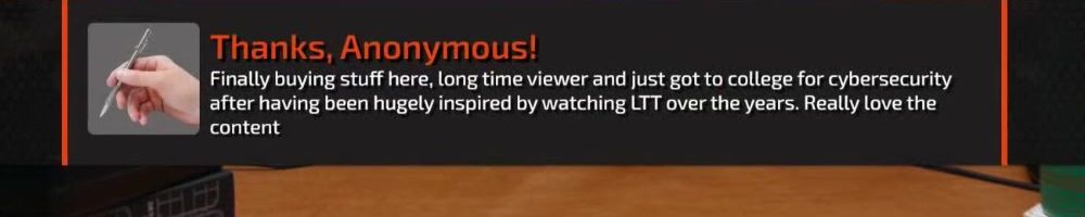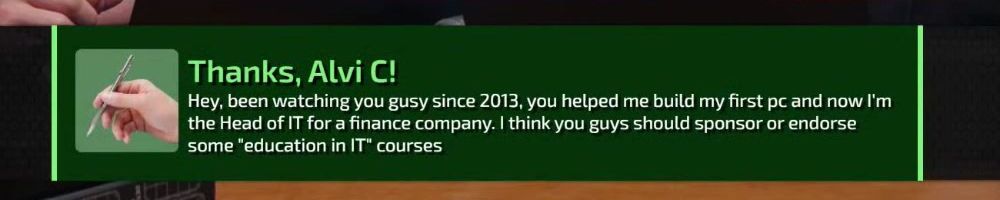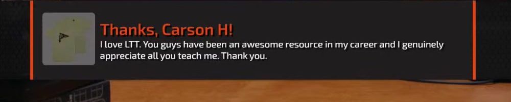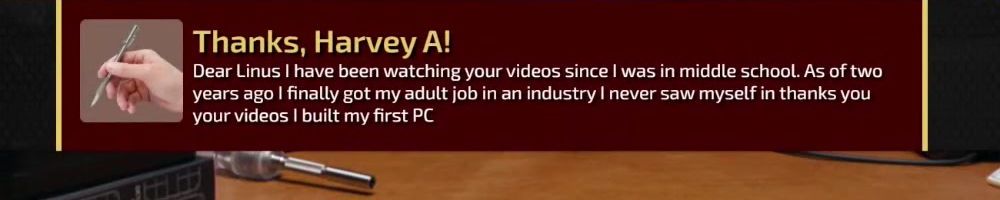 Thanks, Harvey A! Dear Linus I have been watching your videos since I was in middle school. As of two years ago I finally got my adult job in an industry I never saw myself in thanks you your videos I built my first PC