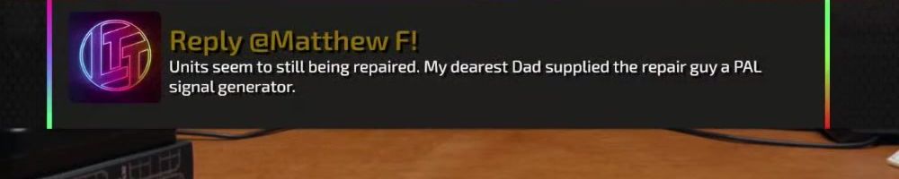 Reply @Matthew F! Units seem to still being repaired. My dearest Dad supplied the repair guy a PAL signal generator.