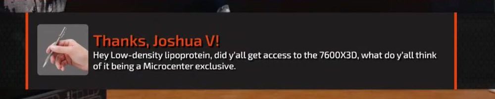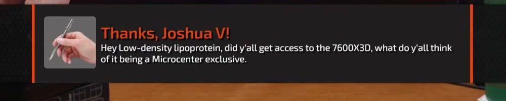 Thanks, Joshua V! Hey Low-density lipoprotein, did y'all get access to the 7600X3D, what do y'all think of it being a Microcenter exclusive.