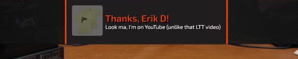 Thanks, Erik D! Look ma, I'm on YouTube (unlike that LTT video)