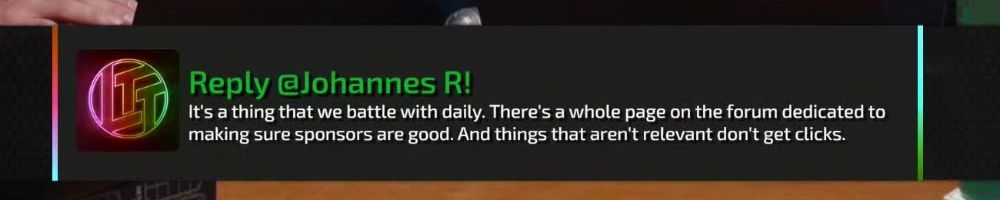 Reply @Joel N! Doubtful. I do find that behavior kinda gross, but if you're the market leader and the "pro" game where people drop 50k on a rig. Maybe it's fine. You know? Still gross though.