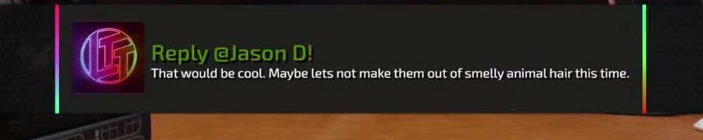 Reply @Jason D! That would be cool. Maybe lets not make them out of smelly animal hair this time.