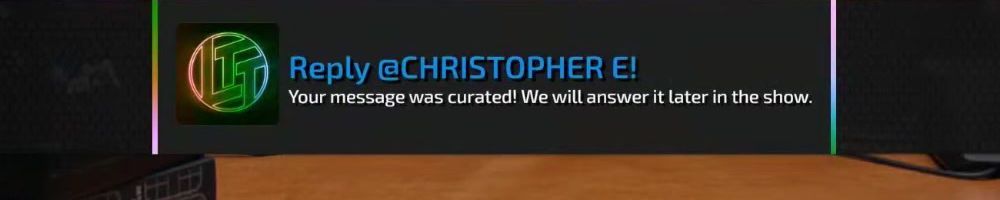 Reply @CHRISTOPHER E! Your message was curated! We will answer it later in the show.