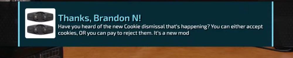 Thanks, Brandon N! Have you heard of the new Cookie dismissal that's happening? You can either accept cookies, OR you can pay to reject them. It's a new mod