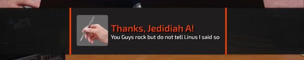 Thanks, Jedidiah A! You Guys rock but do not tell Linus I said so