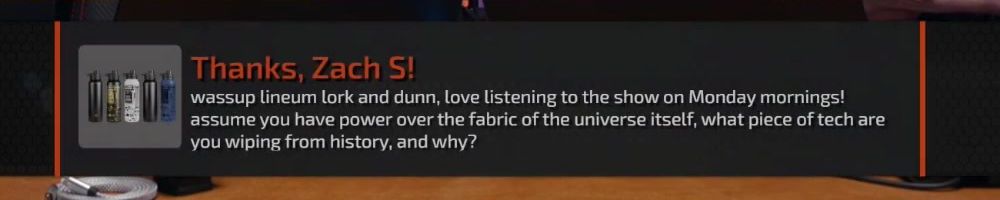 Hint: Use CTRL + F to search messages in this show, or use Whenplane's WAN Show Search tool to search for messages in all shows.