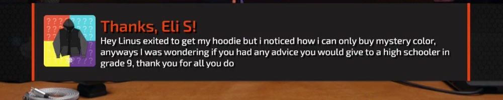 Hey Linus excited to get my hoodie but i noticed how i can only buy mystery color, anyways I was wondering if you had any advice you would give to a high schooler in grade 9, thank you for all you do