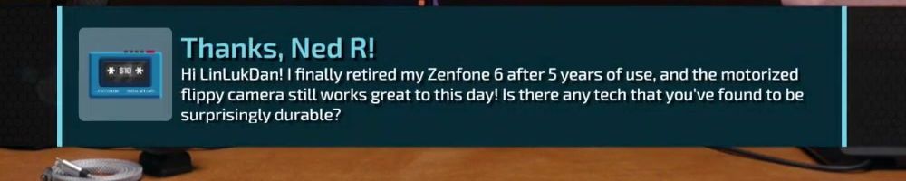 Hi LinLukDan! I finally retired my Zenfone 6 after 5 years of use, and the motorized flippy camera still works great to this day! Is there any tech that you've found to be surprisingly durable?