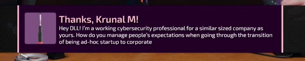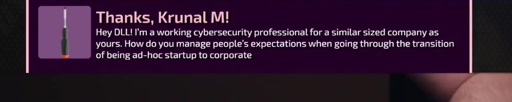 Hey DLL! I'm a working cybersecurity professional for a similar sized company as yours. How do you manage people's expectations when going through the transition of being ad-hoc startup to corporate
