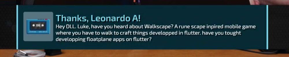 Hey DLL. Luke, have you heard about Walkscape? A rune scape inpired mobile game where you have to walk to craft things developped in flutter. have you tought developping floatplane apps on flutter?