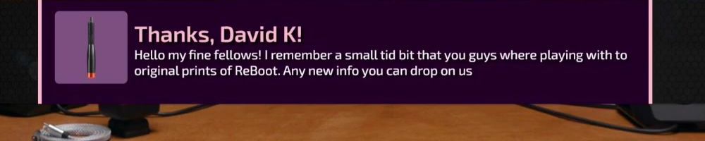 Hello my fine fellows! I remember a small tid bit that you guys where playing with to original prints of ReBoot. Any new info you can drop on us