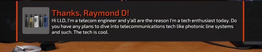 Hi LLD, I'm a telecom engineer and y'all are the reason I'm a tech enthusiast today. Do you have any plans to dive into telecommunications tech like photonic line systems and such. The tech is cool.