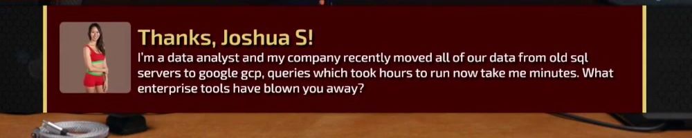 I'm a data analyst and my company recently moved all of our data from old sql servers to google gcp, queries which took hours to run now take me minutes. What enterprise tools have blown you away?
