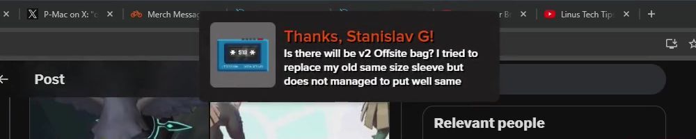 Is there will be v2 Offsite bag? I tried to replace my old same size sleeve but does not managed to put well same thing and failed. Made some photos to compare at ltt forum. #nordling