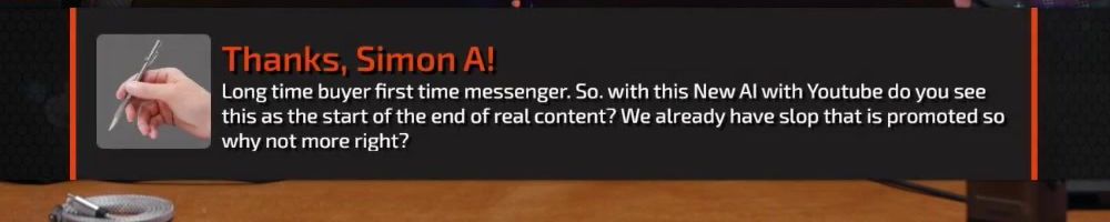 Long time buyer first time messenger. So. with this New Al with Youtube do you see this as the start of the end of real content? We already have slop that is promoted so why not more right?