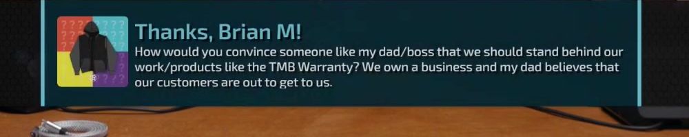 How would you convince someone like my dad/boss that we should stand behind our work/products like the TMB Warranty? We own a business and my dad believes that our customers are out to get to us.