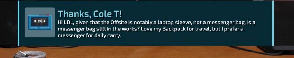 Hi LDL, given that the Offsite is notably a laptop sleeve, not a messenger bag, is a