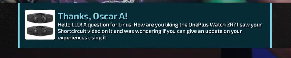 Hello LLD! A question for Linus: How are you liking the OnePlus Watch 2R? I saw your Shortcircuit video on it and was wondering if you can give an update on your experiences using it