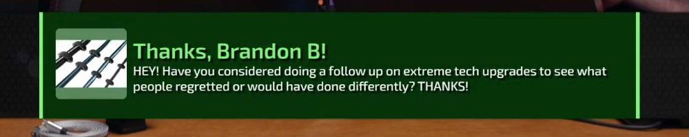 HEY! Have you considered doing a follow up on extreme tech upgrades to see what people regretted or would have done differently? THANKS!