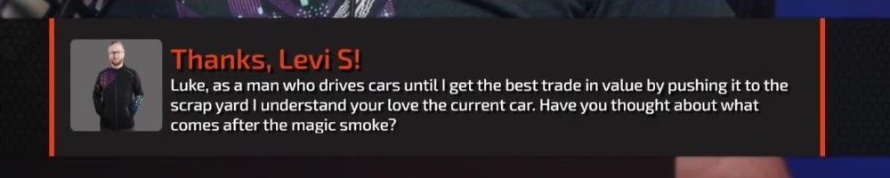 Luke, as a man who drives cars until I get the best trade in value by pushing it to the scrap yard I understand your love the current car. Have you thought about what comes after the magic smoke?