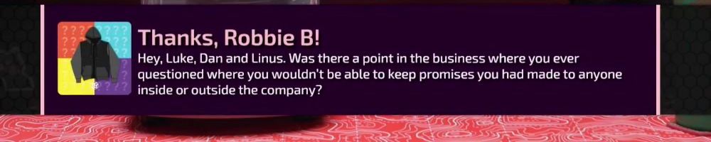 Hey, Luke, Dan and Linus. Was there a point in the business where you ever questioned where you wouldn't be able to keep promises you had made to anyone inside or outside the company?