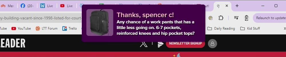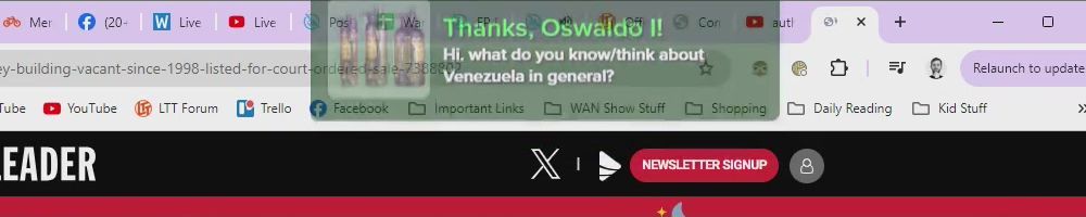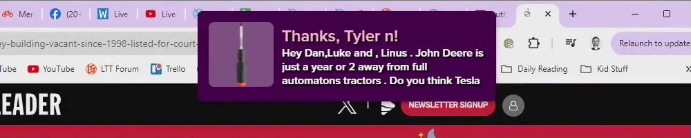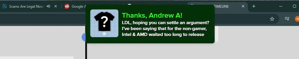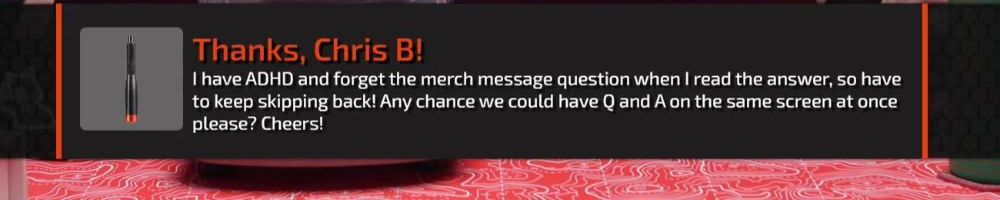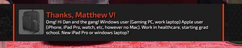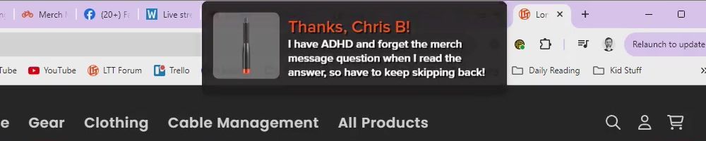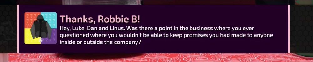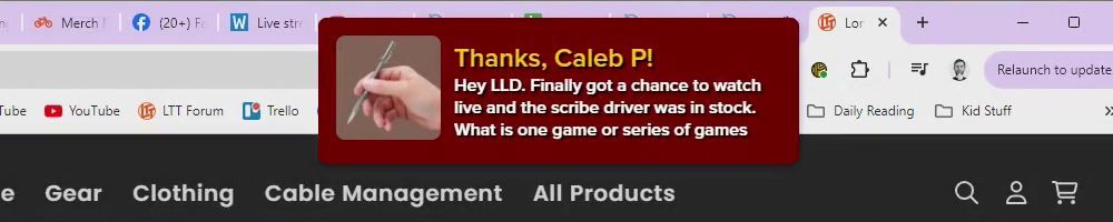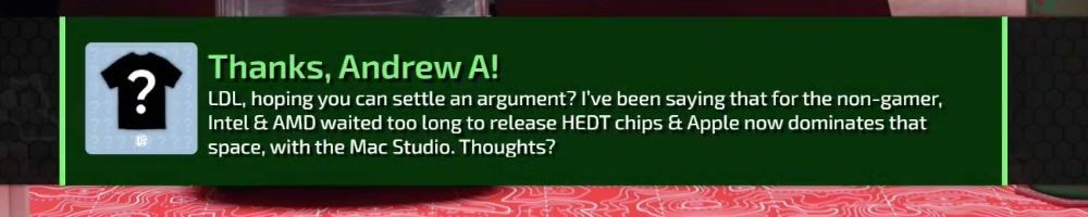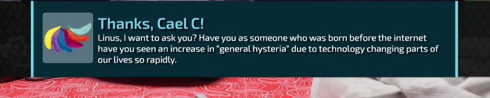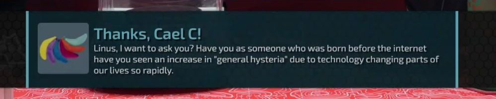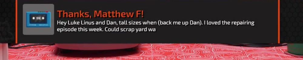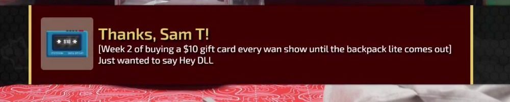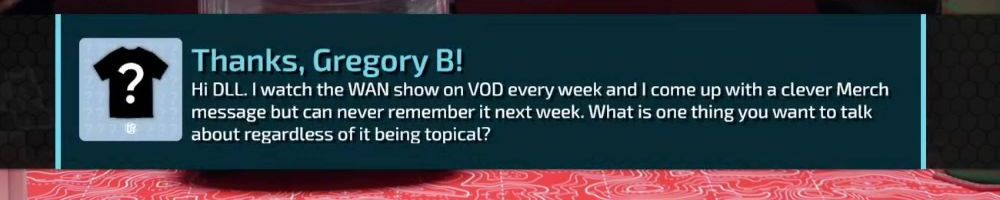 Hi DLL. I watch the WAN show on VOD every week and I come up with a clever Merch message but can never remember it next week. What is one thing you want to talk about regardless of it being topical?